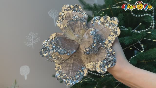 332441 Елочное украшение Мак велюровое с пайетками винтажное на прищепке серебро 20см