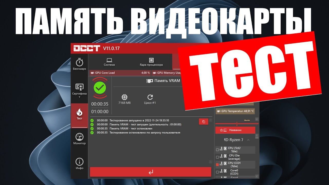 Как протестировать память Видеокарты ? OCCT