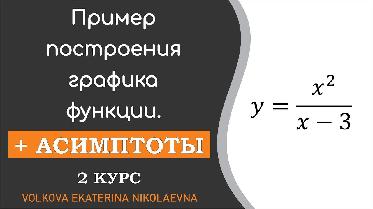 Применение производной к исследованию функций и построению графиков. Общая схема исследования функции для построения её графика. Вертикальная, горизонтальная, наклонная асимптота. Как найти асимптоты. 2 курс. Техникум, колледж. Дифференцирование функции y=f(ax+b). Урок 5. https://www.youtube.com/watch?v=BpKLVv5Ea6E 00:00 Введение. 01:10 Область определения функции. 01:58 Четность\нечетность (периодичность). 05:40 Точки пересечения графика с осями координат. 07:21 Асимптоты графика функции. 18:48 Промежутки монотонности функции, точки экстремума. 28:49 Промежутки выпуклости графика функции, точки перегиба. 37:27 Таблица дополнительных значений. График.