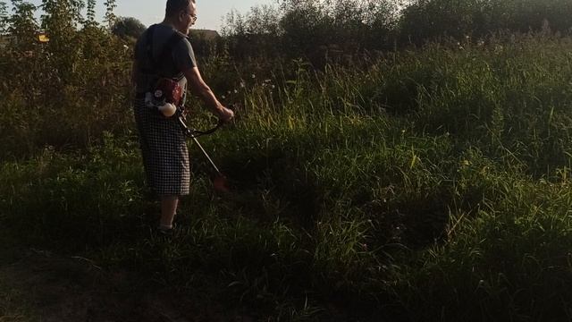 SG230-LITE 4 тактная сверх лёгкая коса с циркулярным диском мягко валит сочную траву на огороде.