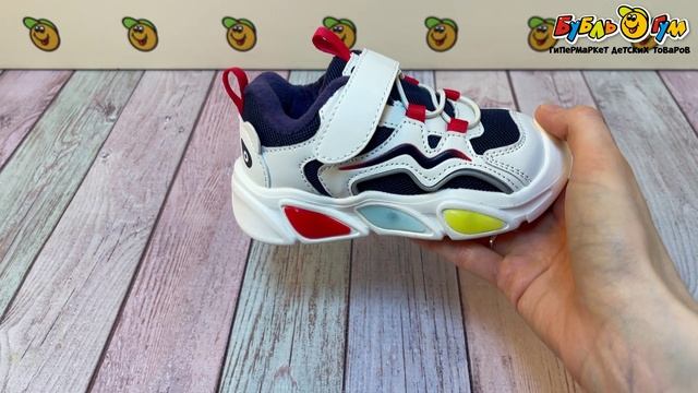 336327 Кроссовки Pasito на липучках с огоньками на подошве и разноцветными вставками белые