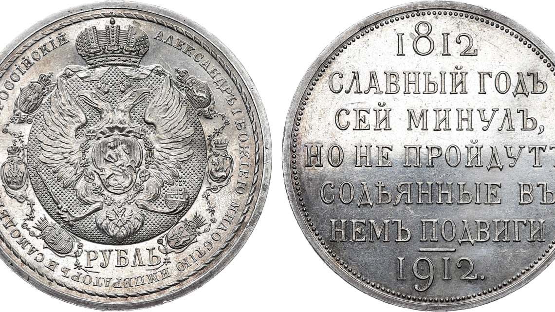 Аукцион 48. Лот 1065 - 1 рубль 1912 года. В память 100-летия победы в Отечественной войне 1812 года