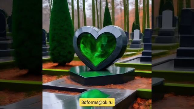 Дизайн памятника в форме сердца, со вставкой из зелёного стекла.