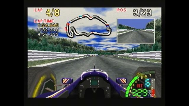 Gameplay of the Japanese version of F-1 Live Information for the Sega Saturn [ F-1 ライブ インフォメーション ]. The US and EU versions of this game are called F1 Challenge. The Japanese version has dynamic commentary during the race and shows meaninful e events in the top right corner. Hence the name, F-1 Live Information.