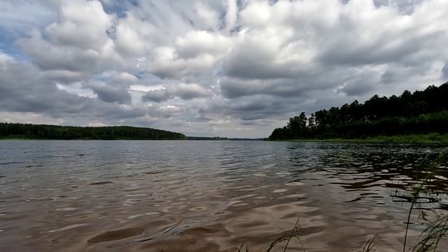 Небо. Облака. Озеро. Вода