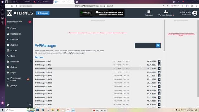 как установить плагины на атернос