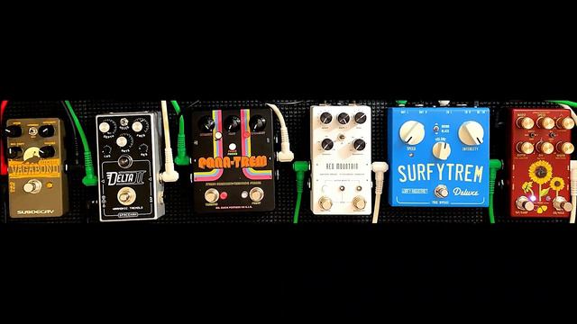 Today we take a look at both Standard and Harmonic Tremolo on the below pedals. Spaceman Delta II Tremolo Swindler Effects Red Mountain V2 Tremolo Mr Black PanaTrem Tremolo Subdecay Vagabond Tremolo Flower Pedals Dunflower Tremolo Surfy Industries SurfyTrem Riff 1 00:00 - Dry Signal Riff 1 - Harmonic Tremolo 00:33 - Flower Pedals Sunflower Tremolo 01:02 - Surfy Indistrues SurfyTrem Deluxe 01:31 - Swindler Effects Red Mountain Tremolo V2 02:00 - Mr Black PanaTrem Tremolo 02:29 - Spaceman Delta II Tremolo 02:58 - Subdecay Vagabond Tremolo Riff 1 - Standard Tremolo 03:27 - Flower Pedals Sunflower Tremolo 03:56 - Surfy Indistrues SurfyTrem Deluxe 04:25 - Swindler Effects Red Mountain Tremolo V2 04:54 - Mr Black PanaTrem Tremolo 05:23 - Spaceman Delta II Tremolo 05:52 - Subdecay Vagabond Tremolo 06:21 - Riff 2 - Dry Signal Riff 2 - Harmonic Tremolo 06:52 - Flower Pedals Sunflower Tremolo 07:22 - Surfy Indistrues SurfyTrem Deluxe 07:53 - Swindler Effects Red Mountain Tremolo V2 08:24 - Mr Black PanaTrem Tremolo 08:55 - Spaceman Delta II Tremolo 09:25 - Subdecay Vagabond Tremolo Riff 2 - Standard Tremolo 09:57 - Flower Pedals Sunflower Tremolo 10:28 - Surfy Indistrues SurfyTrem Deluxe 10:59 - Swindler Effects Red Mountain Tremolo V2 11:30 - Mr Black PanaTrem Tremolo 12:00 - Spaceman Delta II Tremolo 12:31 - Subdecay Vagabond Tremolo Riff 3 13:01 - Dry Signal Riff 3 - Harmonic Tremolo 13:42 - Flower Pedals Sunflower Tremolo 14:22 - Surfy Indistrues SurfyTrem Deluxe 15:02 - Swindler Effects Red Mountain Tremolo V2 15:42 - Mr Black PanaTrem Tremolo 16:22 - Spaceman Delta II Tremolo 17:02 - Subdecay Vagabond Tremolo Riff 3 - Standard Tremolo 17:42 - Flower Pedals Sunflower Tremolo 18:21 - Surfy Indistrues SurfyTrem Deluxe 19:01 - Swindler Effects Red Mountain Tremolo V2 19:42 - Mr Black PanaTrem Tremolo 20:22 - Spaceman Delta II Tremolo 21:02 - Subdecay Vagabond Tremolo Slowest Speeds 21:44 - Flower Pedals Sunflower Tremolo 22:23 - Surfy Indistrues SurfyTrem Deluxe 22:44 - Swindler Effects Red Mountain Tremolo V2 23:04 - Mr Black PanaTrem Tremolo 23:24 - Spaceman Delta II Tremolo 23:43 - Subdecay Vagabond Tremolo Fastest Speeds 24:03 - Flower Pedals Sunflower Tremolo 24:24 - Surfy Indistrues SurfyTrem Deluxe 24:44 - Swindler Effects Red Mountain Tremolo V2 25:04 - Mr Black PanaTrem Tremolo 25:31 - Spaceman Delta II Tremolo 25:51 - Subdecay Vagabond Tremolo Knob Twiddline 26:11 - Flower Pedals Sunflower Tremolo 32:15 - Surfy Indistrues SurfyTrem Deluxe 34:41 - Swindler Effects Red Mountain Tremolo V2 38:19 - Mr Black PanaTrem Tremolo 40:44 - Spaceman Delta II Tremolo 44:22 - Subdecay Vagabond Tremolo