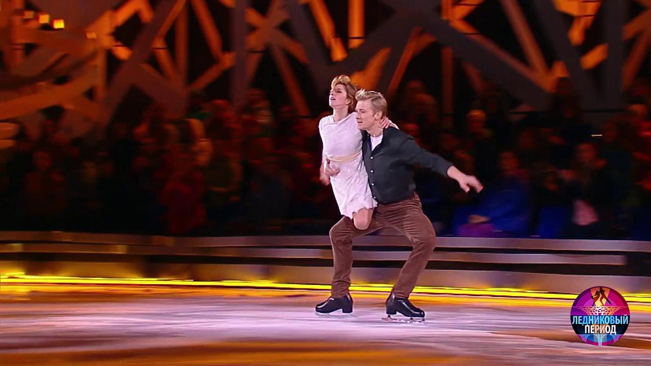 На льду – чемпионка Европы Яна Хохлова и актер театра и кино Вячеслав Чепурченко. Они танцуют под песню Марии Чайковской «Поговори со мной».