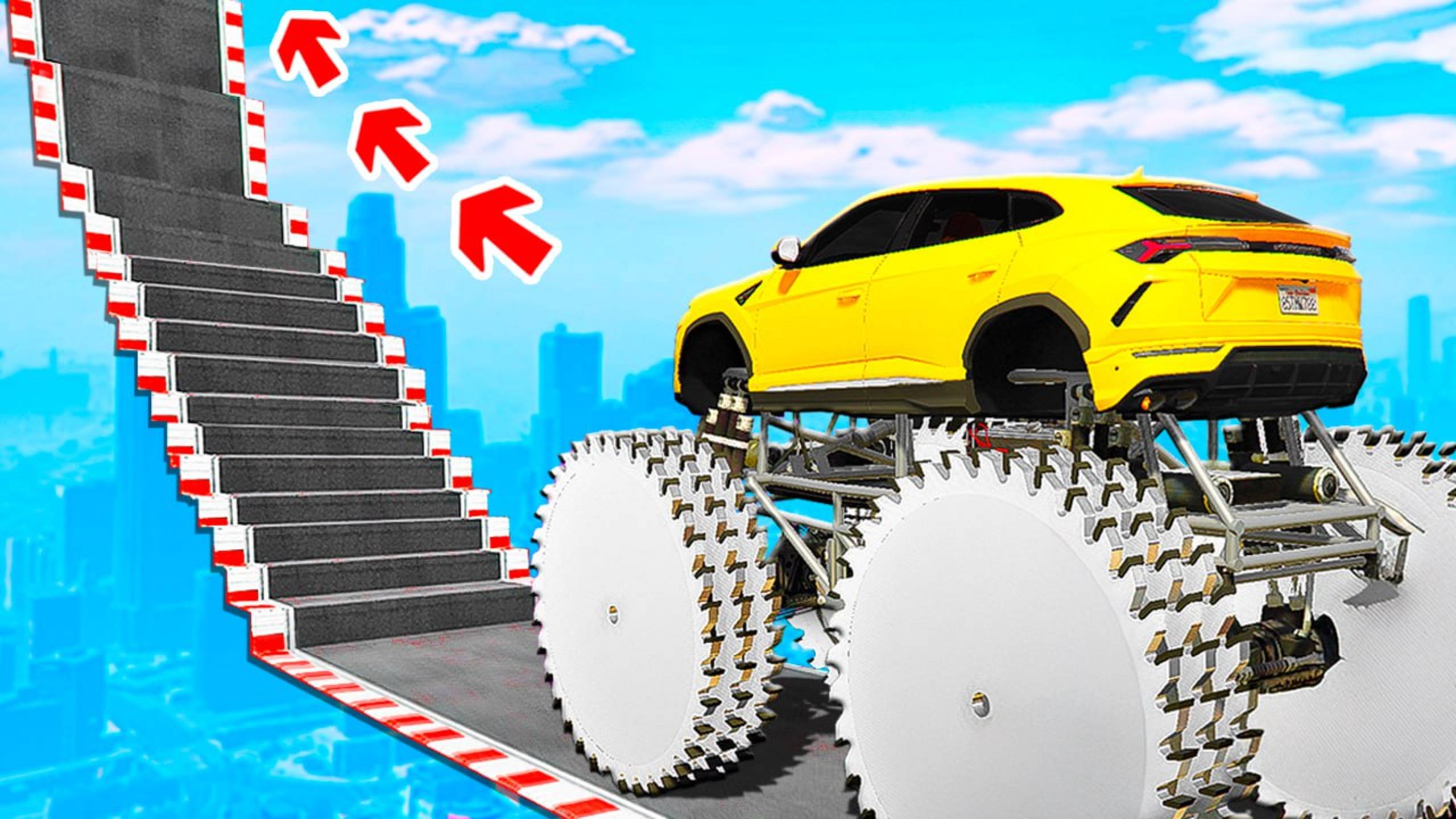 СМОЖЕТ ЛИ ОГРОМНАЯ ТАЧКА ПРОЕХАТЬ ПО СТУПЕНЬКАМ ЛЕСТНИЦЫ В ГТА 5? ЭКСПЕРИМЕНТ В GTA 5!