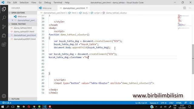 CSS ve Javascript kullanarak dama tahtası çiziminin yapımı Bu uygulamada createTextNode, createElement, appendChild özelliklerinin kullanımı görülecektir.