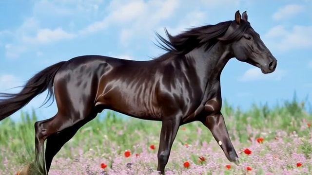 конь бежит рысью