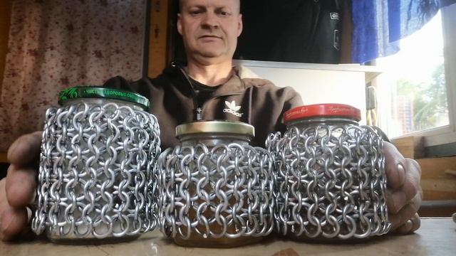 Кольчужное плетения трех баночек, под сахар, кофе и мед