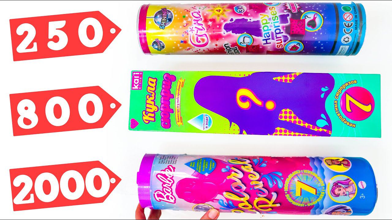 Возвращаем рубрику ДОРОГО ДЕШЕВО на канал с помощью сюрпризов с куклами Барби, которые МЕНЯЮТ ЦВЕТ! Я взяла оригинальную Barbie Color Reveal за 2000 рублей, аналог из магазина Kari Kids за 799 рублей и копию с рынка за 250 рублей. Проверим, какие Барби меняют цвет, и узнаем, стоит ли платить больше. Победителей прошу написать мне в Инстаграм smallanntoday в течение недели с выхода видео. Ответ будет дат в течение трех недель.