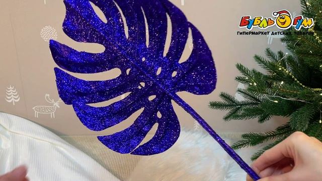 332406 Лист декоративный Монстера с блестящим покрытием синий 60см