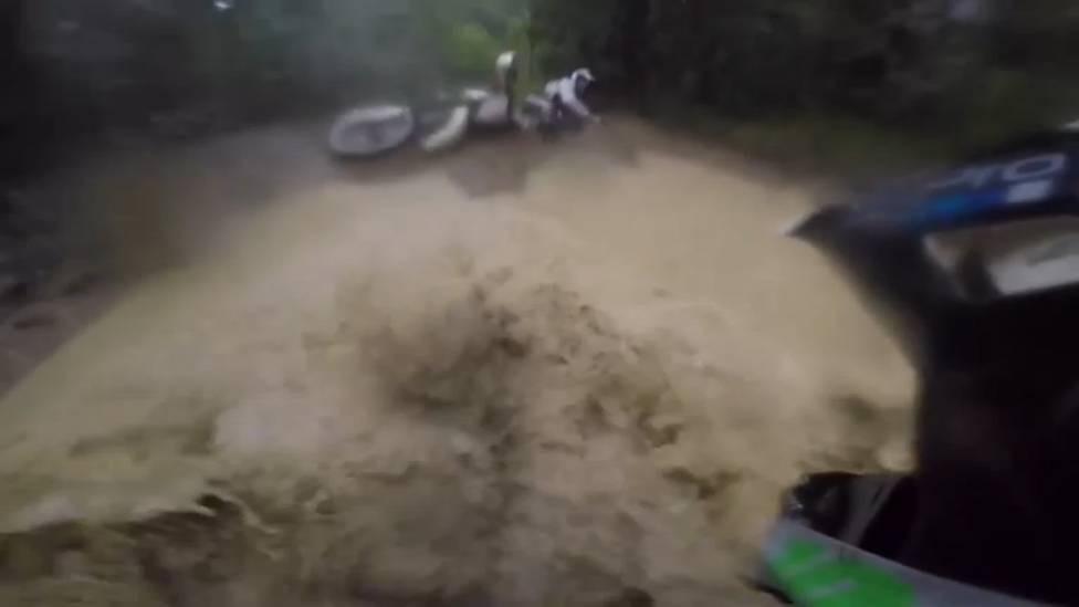 Ребята слишком увлеклись гонками наперегонки, что не заметили большую лужу впереди...