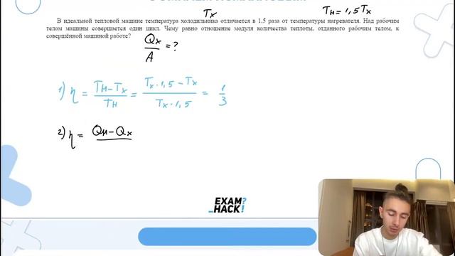 В идеальной тепловой машине температура холодильника отличается в 1,5 раза от температуры - №30012