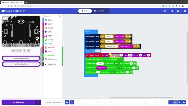 Смотрите как создать простой проект, используя плату Microbit вместе с дисплеем 16x2 символов, подключенным с помощью соединения I2C и отображающим данные с встроенных датчиков - температуру, уровень звука и уровень освещенности. Значение отображается вместе с пользовательским символом и простым анимированным датчиком (также с использованием пользовательских символов). Никакого программирования; просто перетаскивайте логические блоки вместе. Идеальное руководство для начинающих. Microbit code: https://makecode.microbit.org/25939-47368-01734-10863