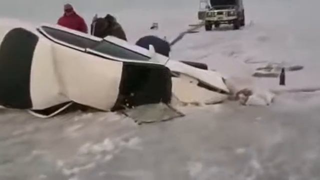 Опасная рыбалка. Рыбаки провалились на машине в трещину во льду. #рыбалка #машина #лёд