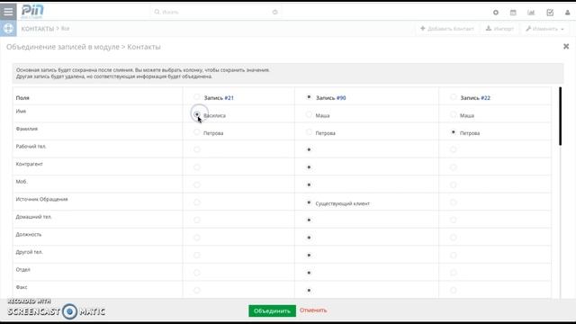 Поиск и объединение дубликатов в vTiger 7