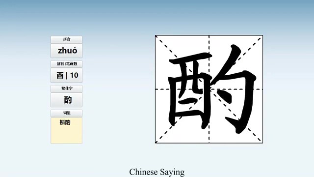 酌 (zhuó) to pour, drink wine; deliberate; consider
