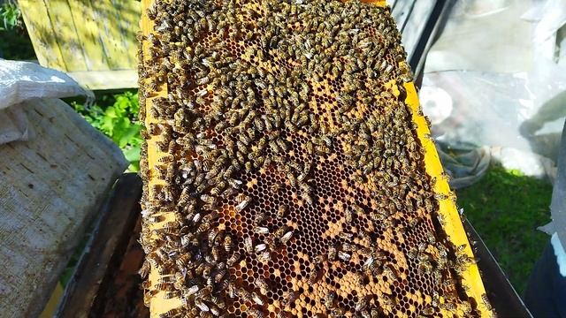 Осмотр семьи пчел . Уже есть медок. Сливы цветут.