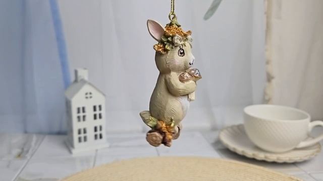 Ёлочная игрушка ЗАЮШКА С ГРИБНЫМ БУКЕТОМ, полистоун, 9 см, D4547-4