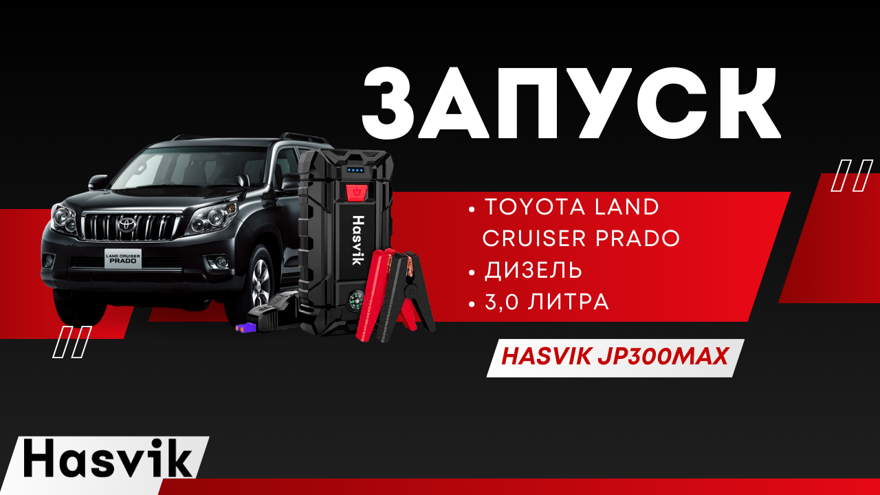 Видео - отзыв о пусковом устройстве Hasvik JP-300Max и запуск дизеля 3.0л Toyota Land Cruiser Prado 150 с разряженным аккумулятором после новогодних праздников. Чтобы заказать Hasvik JP-300Max , позвоните по телефону 8(800)-511-93-74 или оставьте заявку на сайте hasvik.ru