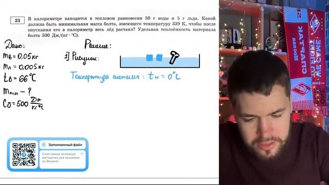 В калориметре находятся в тепловом равновесии 50 г воды и 5 г льда. Какой должна быть - №21411