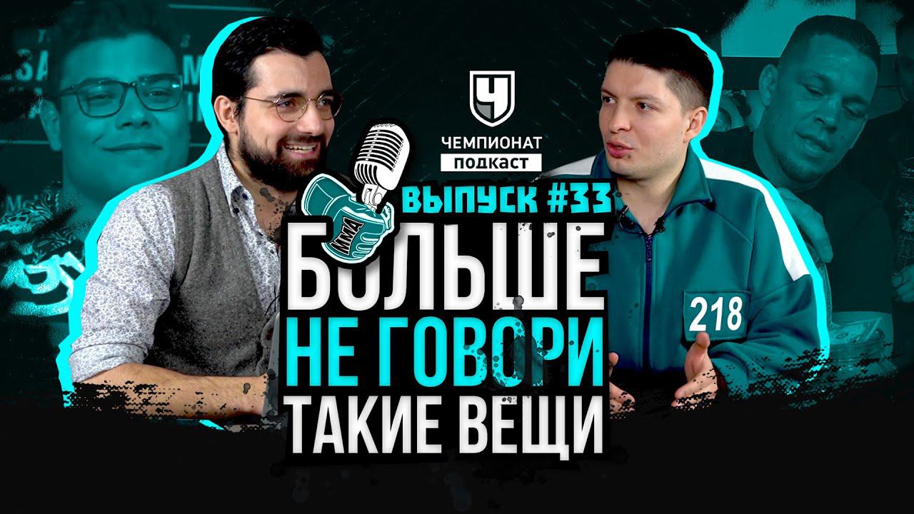 Это опять мы! MMA - подкаст "Больше не говори такие вещи" номер 33. Снова зверский хронометраж выпуска, снова все актуальное из мира смешанных единоборств, снова наши лица. Багдасарян, Володин, Чемпионат Подкаст, Поехали! Обсуждаем турниры Bellator 269 с Федором, Токовым, Минаковым и Нурмагомедовым, а также, UFC с Пауло Костой и Марвином Веттори. А еще поговорим про титульную гонку в среднем весе, как в Беллатор, так и в UFC, приключения Кевина Ли, странные оправдания Джонни Уокера, треугольник Тони Фергюсона, Нейта Диаза и Конора Макгрегора, убойный бой Мовсара Евлоева и Илии Топурии, и, конечно же, грядущий сумасшедший по составу турнир UFC 267! (ТАЙМКОДЫ ниже!) Уже по традиции Давид Багдасарян (aka Hardcore MMA) и Олег Володин помогут вам органично влиться в мма - движение. Все минувшие и грядущие турниры в UFC и Bellator, новости, рейтинги и так далее. Это "Больше не говори такие вещи" на Чемпионат Подкаст. Супербои HFC: Чоршанбе VS Тарасов. Акаб, Ковалев, Филичкин VS Т-34, Джанго. Золотой VS Ахиллес https://www.youtube.com/watch?v=ugwtg0l67Vw Как найти нас в социальных сетях: Давид Багдасарян в инстаграме: https://www.instagram.com/hardcore.mma/ Проект Давида на Youtube: https://www.youtube.com/channel/UC6OCnksNRXOQvXi3H06nNOg Олег Володин в инстаграме: https://www.instagram.com/volodin_mma/ Слушайте на удобных платформах: • в iTunes https://apple.co/34doqxL • в Google Podcasts https://bit.ly/3bDTieG • в «СберЗвук» https://bit.ly/3yq9cTW • в «Яндекс. Музыке» https://bit.ly/3v3esdS • в плеере Castboх https://bit.ly/3f0nCSX • в плеере Podster https://bit.ly/3bDTmLs Коста красава? Федор - что дальше? Диаз - Тони - Конор. Бешеный UFC 267. Прогнозы. Петр Ян, Блахович ТАЙМКОДЫ: 0:00 – Всем привет! Что мы сегодня будем обсуждать? 2:25 – Последний Беллатор был круче UFC? 6:00 – У Джонса и Йенджейчик проблемы в рейтинге. 16:48 – Немного про Кевина Ли и допинг. 27:16 – Вес Косты и мужество Веттори. 58:44 – Что дальше для Косты? 01:09:34 – Обсуждаем несколько спорных судейских решений. 01:15:56 – Итоги Беллатора: Емельяненко, Нурмагомедов и Шлеменко. 01:45:39 – Дальнейшие планы Фёдора: пояс, пенсия или UFC? 01:58:51 – Ситуация с контрактом Резникова. 02:09:06 – Бойцовский треугольник: Конор, Тони и Нейт. 02:16:36 – Обсуждаем разные новости и свежие анонсы боёв. 02:29:41 – Кто точно победит на UFC 267? 02:38:17 – Блахович или Тейшейра? 02:44:45 – У Хукера нет шансов? 02:49:44 – Чимаев и Волков могут проиграть? 03:01:33 – Отвечаем на вопросы подписчиков. 03:14:50 – Рубрика «Советуем посмотреть». 03:16:28 – Продолжаем отвечать на вопросы подписчиков. 03:32:40 – Прощаемся (не забудьте поставить лайк и написать коммент). #юфс #подкаст #мма