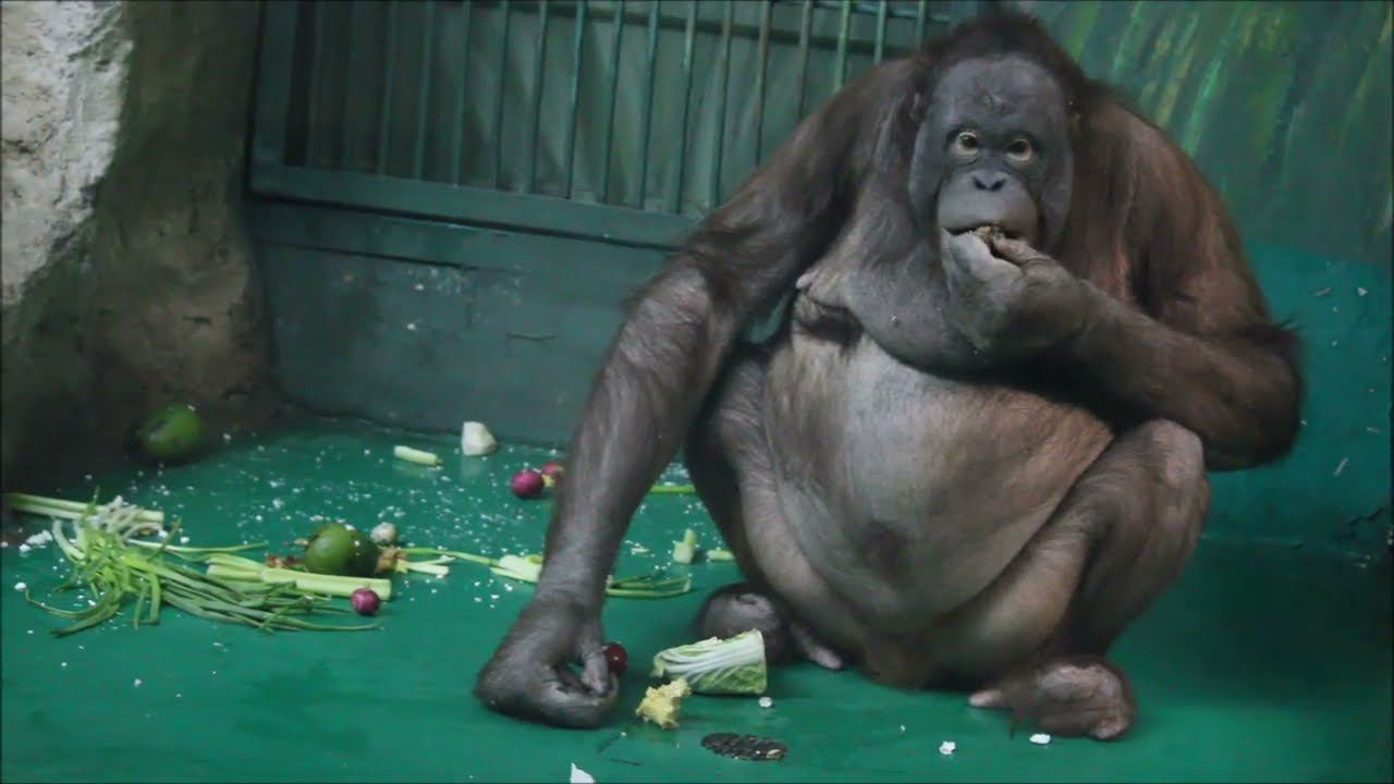 Орангутаны Мишель и Бату обедают 14.02.2024
