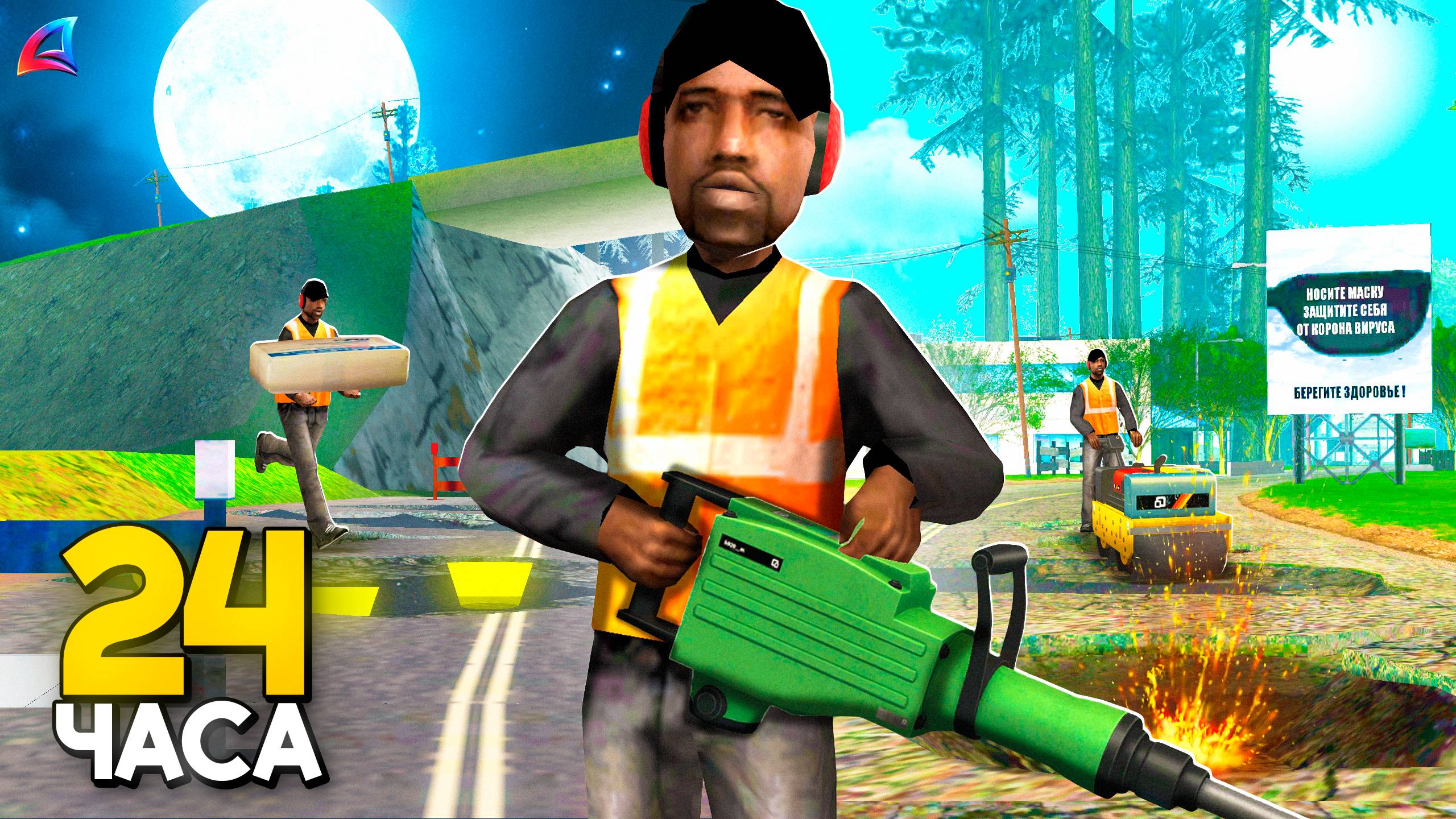 24 ЧАСА на НОВОЙ работе РЕМОНТНИКА ДОРОГ на ARIZONA RP GTA SAMP АРИЗОНА РП