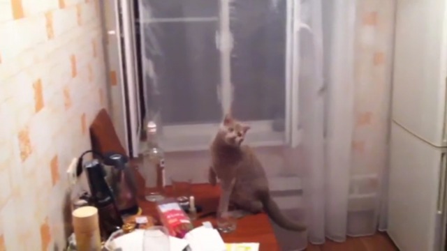 Киса гоняется за мотылем
