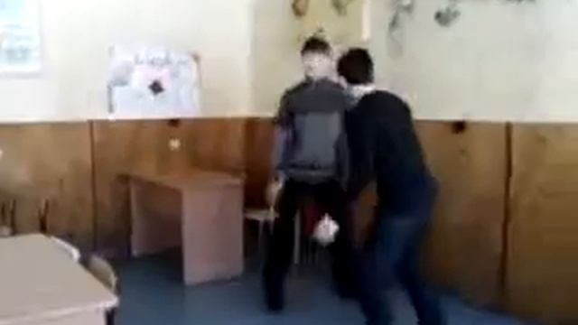 два пацана хотели пробить стену ногой.
