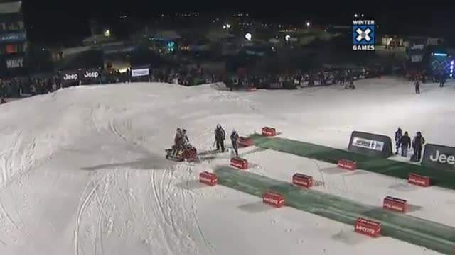 Бэкфлип вдвоем на снегоходе