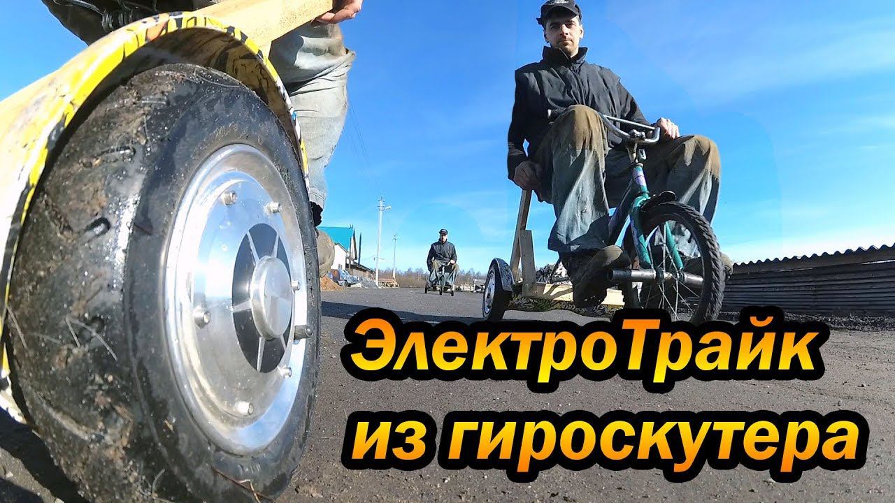 МиниЭлектроТрайк из гироскутера своими руками, простейшая конструкция. Electric trike gyroscooter.