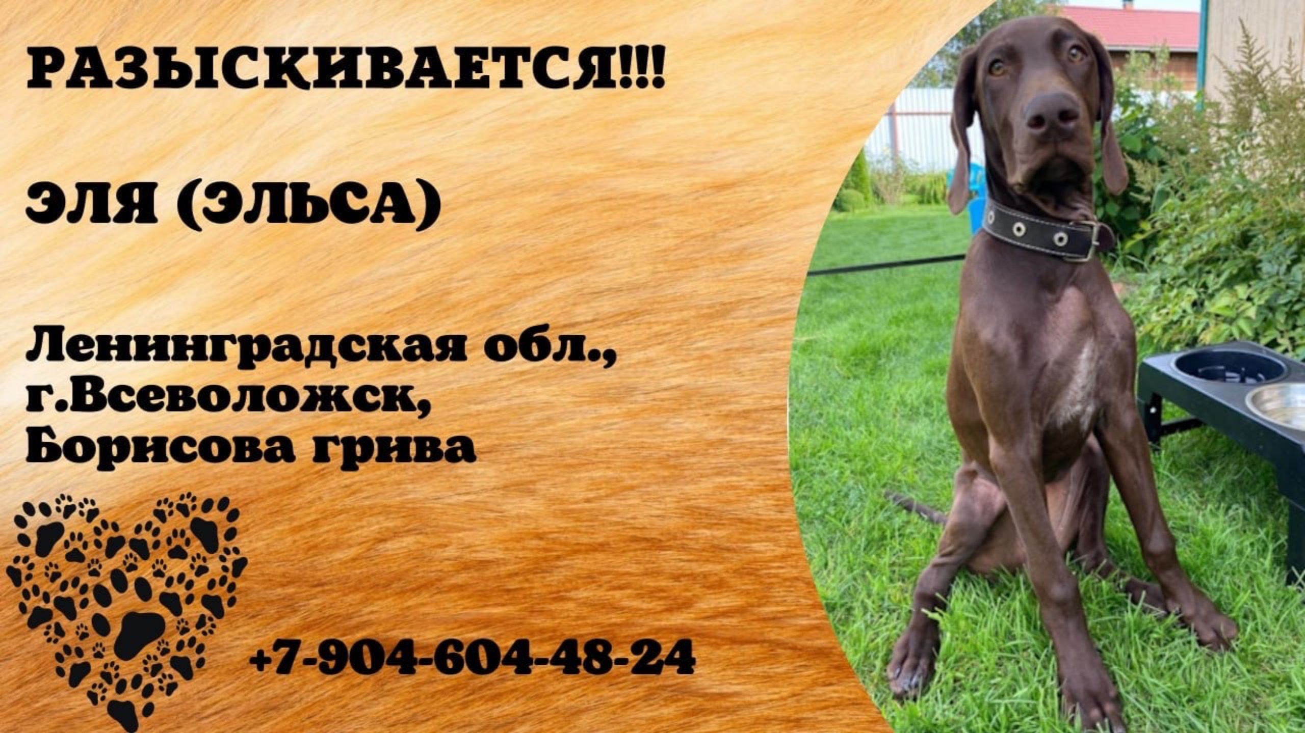 Ленинградская Санкт-Петербург, Всеволожск - Борисова Грива Пропала собака ПРОПАЛА СОБАКА, ВОЗНАГРАЖДЕНИЕ В РАЗМЕРЕ 100 000 ГАРАНТИРОВАНО‼‼‼ Здравствуйте, у нас потерялась собака 7 февраля, ночью, убежала в сторону борисовки, если кто то видел или слышал, пожалуйста отзвонитесь Собака откликается на имя Эля, Эльса 89046044824 София Автор: https://vk.com/id624182329 Инфо https://vk.com/wall-198815410_179706 #пропала_собака #ленинградская #санкт_петербург