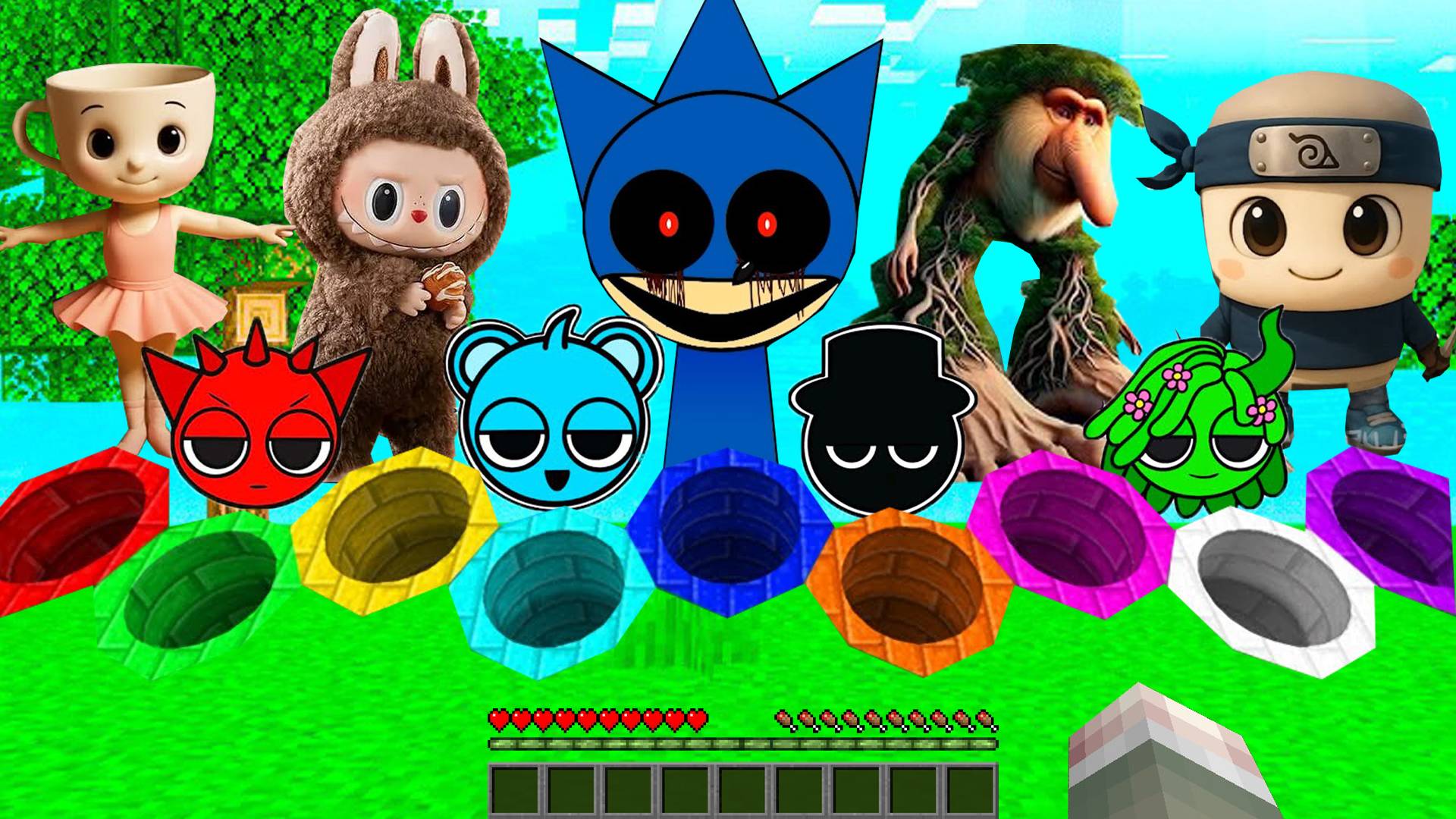 ВЫЖИВАНИЕ В МАЛЕНЬКИХ КРУГЛЫХ ЯМАХ В МАЙНКРАФТ ЛАБУБУ СПРУНКИ МЕМЫ БРЕЙНРОТ