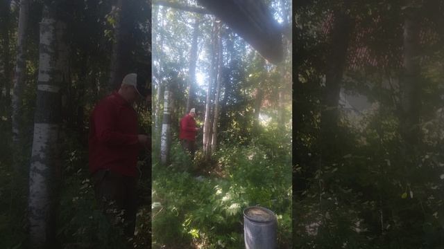 Хлопаю ковёр на даче.