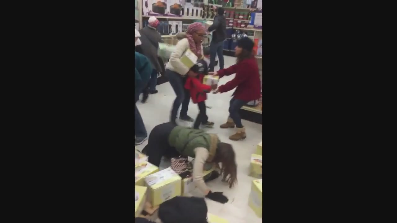 В США люди борются за товар в черную пятницу.