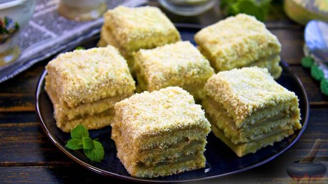 Бисквитный торт с халвой - оригинальное и вкусное лакомство из обычных продуктов. Крем получается очень нежным, сливочным, а халва придаёт бесподобный аромат. #Торт #ТортБисквитный #ТортСоСгущенкой