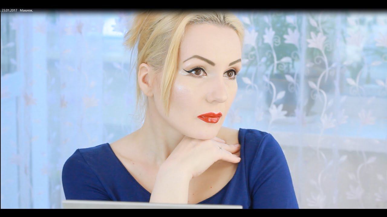 Классический макияж со стрелками и красной помадой.