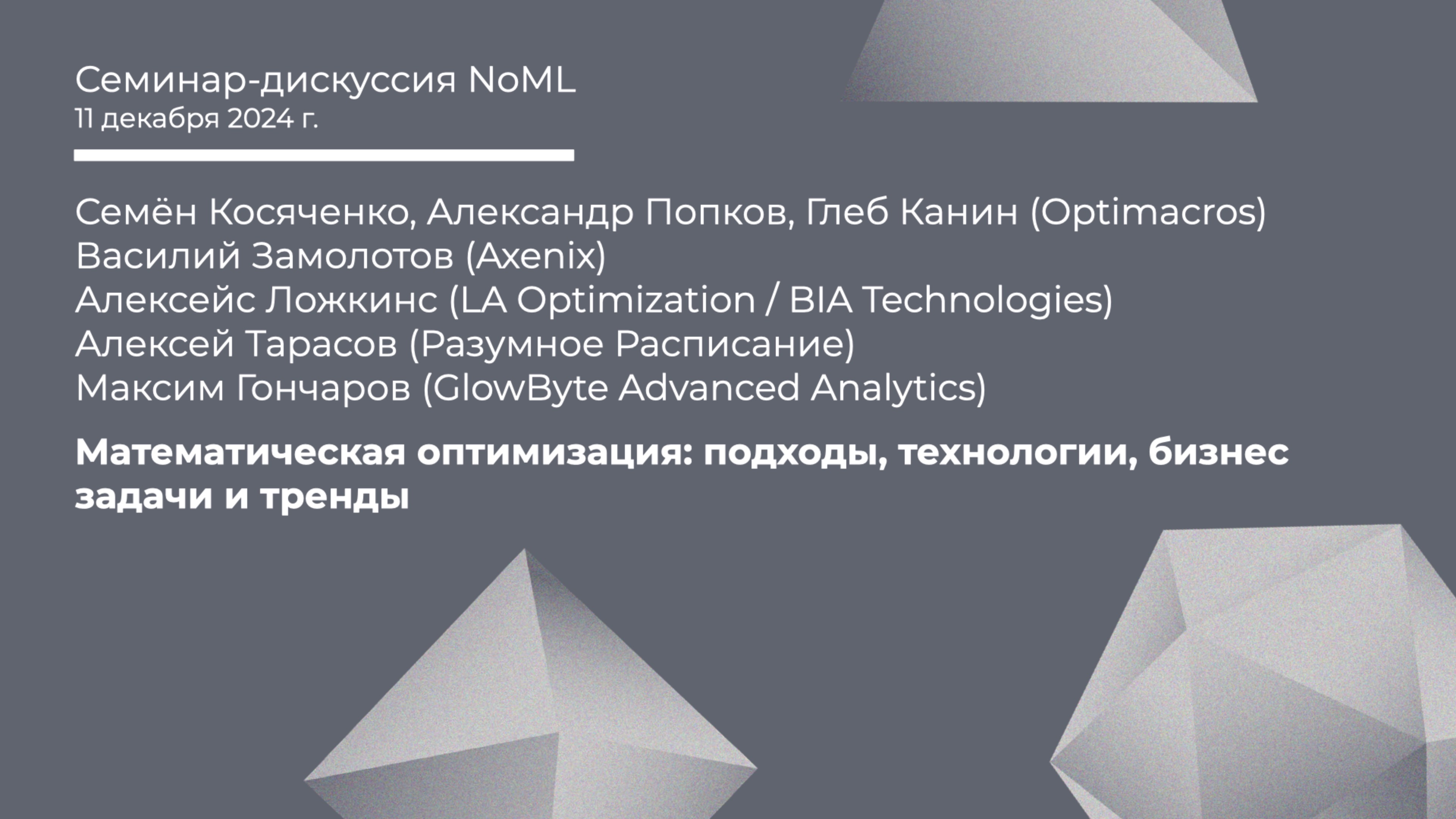 Дискуссия: Математическая оптимизация: подходы, технологии, бизнес задачи и тренды