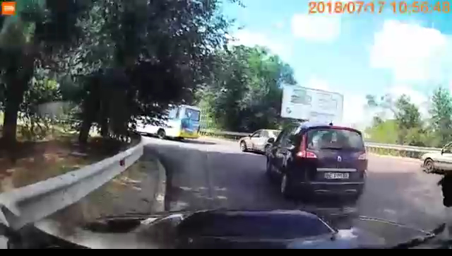 (Присутствует ненормативная лексика). Водитель при движении на повороте удивился, что его никто не подрезал, и через несколько секунд - прилетело.