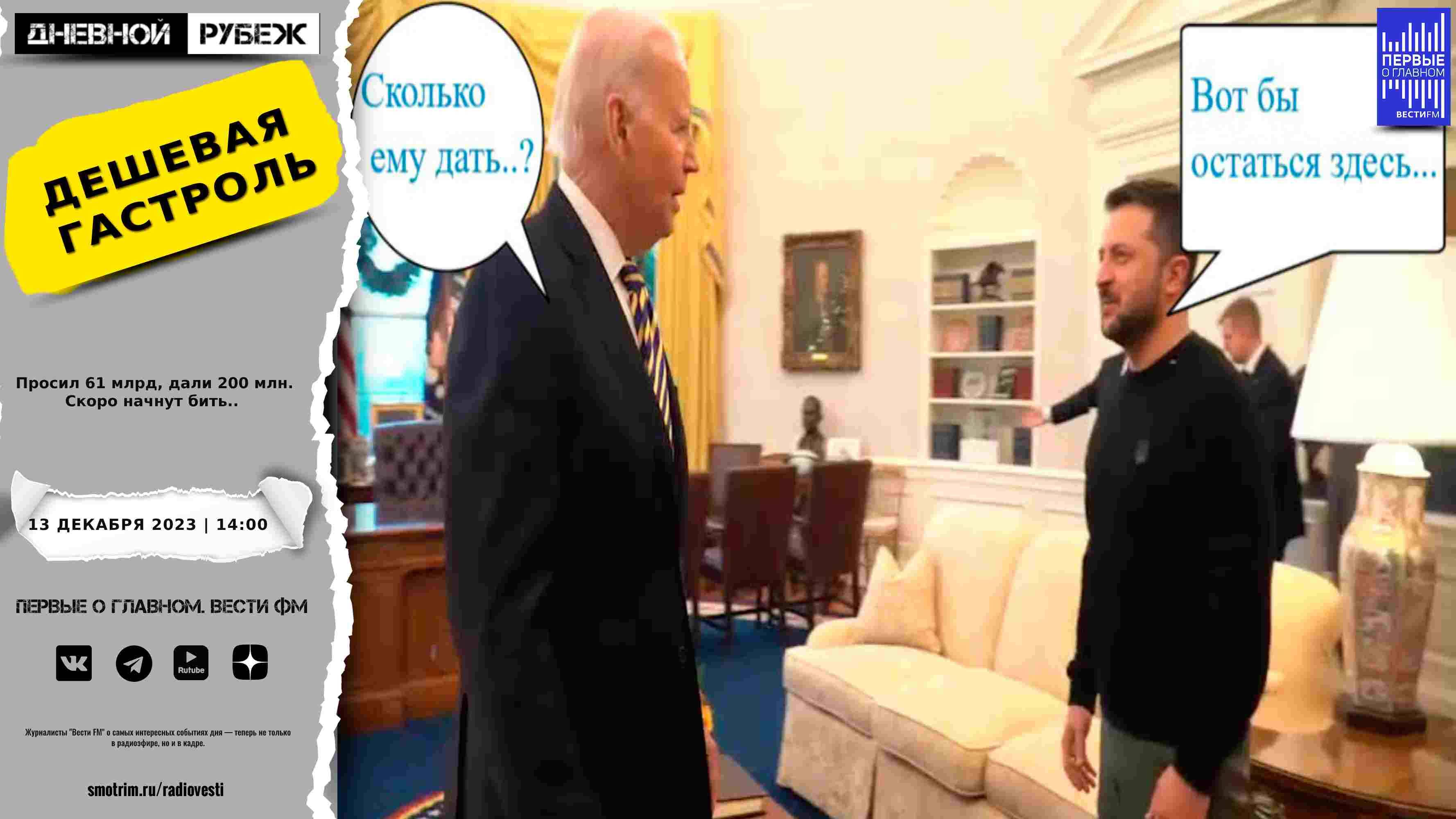 #дневнойрубеж #первыеоглавном #сво #донбасс #спецоперация #украина #байден #зеленский #вашингтон #деньги #помощь #конгресс #россия #пленные #такеркарлосон Просил 61 млрд, дали 200 млн. Скоро начнут бить... ?Подписывайтесь на Telegram канал - Первые о главном: https://t.me/vestifmfirst ?Подписывайтесь на Rutube канал - Первые о главном: https://rutube.ru/channel/24115140/ ?Подписывайтесь на VK канал - Первые о главном: https://vk.com/first.vestifm ?Подписывайтесь на ДЗЕН канал - Первые о главном: https://zen.yandex.ru/id/5fc4960a799d1b24b5be5189 ?Подписывайтесь на Telegram канал - ВестиFM+: https://t.me/s/vestifmplus СМОТРИТЕ НАС НА ПЛОЩАДКЕ СМОТРИМ: https://smotrim.ru/channel/365