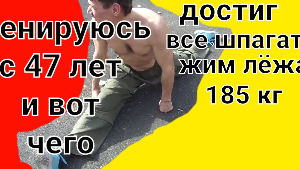 Сижу на шпагате в 54 года и общаюсь с вами. Говорю о всех шпагатах и о жиме лёжа в 185 кг.