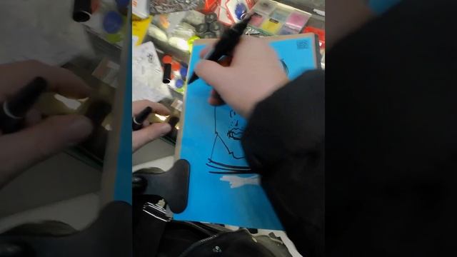 Тест фломастеров в артбутике в ТЦ "Лермонтов" (Студгородок). Портретная зарисовка с натуры. Рисование реальном времени. Вчера 17.03.2024 г. - праздник всенародного единогласного радостного чествования нового срока правления нашего дорогого любимого уважаемого президента Владимира Владимировича Путина я сделал днём портретных подарков. Сначала я рисовал на Маслнннице в усадьбе князя Волконского, а закончил поздно вечером на выборнном участке в Студгородке. Там же в ТЦ Лермонтов есть небольшой, но неплохой арт-бутик в котором я регулярно отовариваюсь. Хотя уже не знаю, что покупать; у меня всё есть и пора самому распродавать художественный хлам, понимая, что по-хорошему, для гениальных рисунков достаточно простой бумаги и любого карандашика. А если сильно нужен цвет, то рядом всегда есть кофе, чай, варенье, кирпичная пыль или кровь из пальца, которым можно рисовать не хуже чем кисточкой. А может быть лучше. Потому что честнее. Кстати, всем начинающи рекомендую проткнуть палец и рисовать своей кровью! Большая польза будет изографоманам и дилетантам, которые лезут со своими каракулями позориться на публику, на выставки, чтобы "самовыражаться", пропиариться и монетизировать изо-макулатуру и ученическую халтуру, приумножая хаос и дисгармонию окружающего пространства. Но рисуя кровью, худо-художник будет задумываться, нужен ли его рисунок Богу-творцу, природе и людям, будет ценить каждую линию! Полезный совет для поэтов, писателей, художников - писать и рисовать своей кровью, не правда ли?! С добрым утром, новая страна! ... Ну, а про великолепные новые фломастеры я расскажу и покажу оттдельно, через неделю, убедившись, что белый фломастер не засохнет, как это происходит со всеми разными белыми маркерами и гелевыми ручками. По крайней мере, продавец, которого я здесь изобразил, мне дал месячную гарантию. А я выпросил право, что если через неделю белый фломастер засохнет, то я его по этой гарантии верну! Вот и посмотрим Штрих-код товара ACRILIC TWIN: 4 626014 077492 (белый FSTA-22 Titanium white) 4 626014 077478 (чёрный FSTA-20 Black)