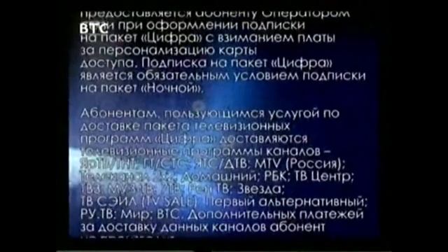 Информация о тарифах в пакете цифрового телевидения ВТС, 16 10 2010