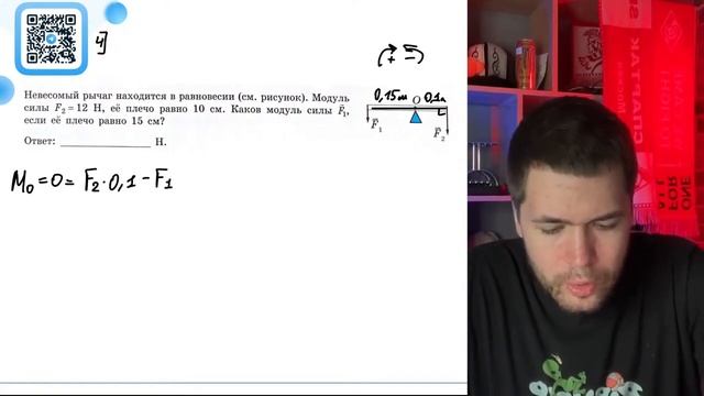 Невесомый рычаг находится в равновесии (см. рисунок). Модуль силы F2=12 Н, её плечо равно - №20846