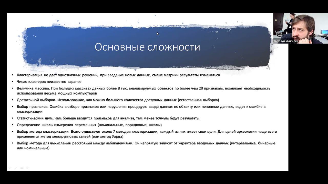 Докладчик: Виталий Мингалев, старший преподаватель кафедры гуманитарных дисциплин НИУ ВШЭ – Пермь; На мастер-классе вы научитесь использовать программу IBM SPSS Statistics для кластерного иерархического анализа в гуманитарных исследованиях. Вы овладеете основными методами кластеризации и измерения мер расстояний. В качестве примера Виталий Викторович продемонстрирует результаты кластерного иерархического анализа артефактов и следов в археологии. Вакансии постдоков НИУ ВШЭ – Пермь: https://perm.hse.ru/migration/news/456542104.html Магистратура "Цифровые методы в гуманитарных науках" https://perm.hse.ru/ma/digitalhum/ Магистратура "Правовое обеспечение предпринимательской деятельности" https://perm.hse.ru/ma/ls/