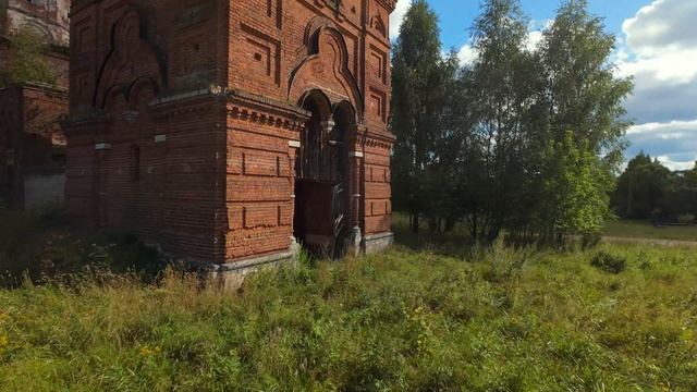 Богородицерождественская церковь с правым приделом Александра Невского и Гурия, Самона и Авива, левым - Николая Чудотворца, сооружена в 1865-1868 годах. Объемная храмовая композиция представляет собой высокий одноглавый четверик с полуциркульной алтарной апсидой, небольшим притвором и отдельно стоящей величавой трехъярусной колокольней, скругленные углы двух верхних ярусов которой акцентированы полуколоннами. В храме была выполнена роспись интерьера, которая частично сохранилась и до настоящего времени. Церковь закрыта в советское время и превращен в склад сена. В настоящее время церковь Казанской иконы Божией Матери не действует, но здание находится в удовлетворительном состоянии и принадлежит Кимрскому благочинию Тверской епархии Русской Православной Церкви Московского Патриархата, что дает право надеяться верующим на возобновление Богослужений в храме. Церковь Казанской иконы Божией Матери в Красном Тверская область, Кимрский район, село Красное 57.286955, 36.873890
